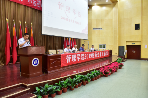 会议初始,党总支书记钱祖煜上台致辞,对新生家长的到来表示热烈欢迎。