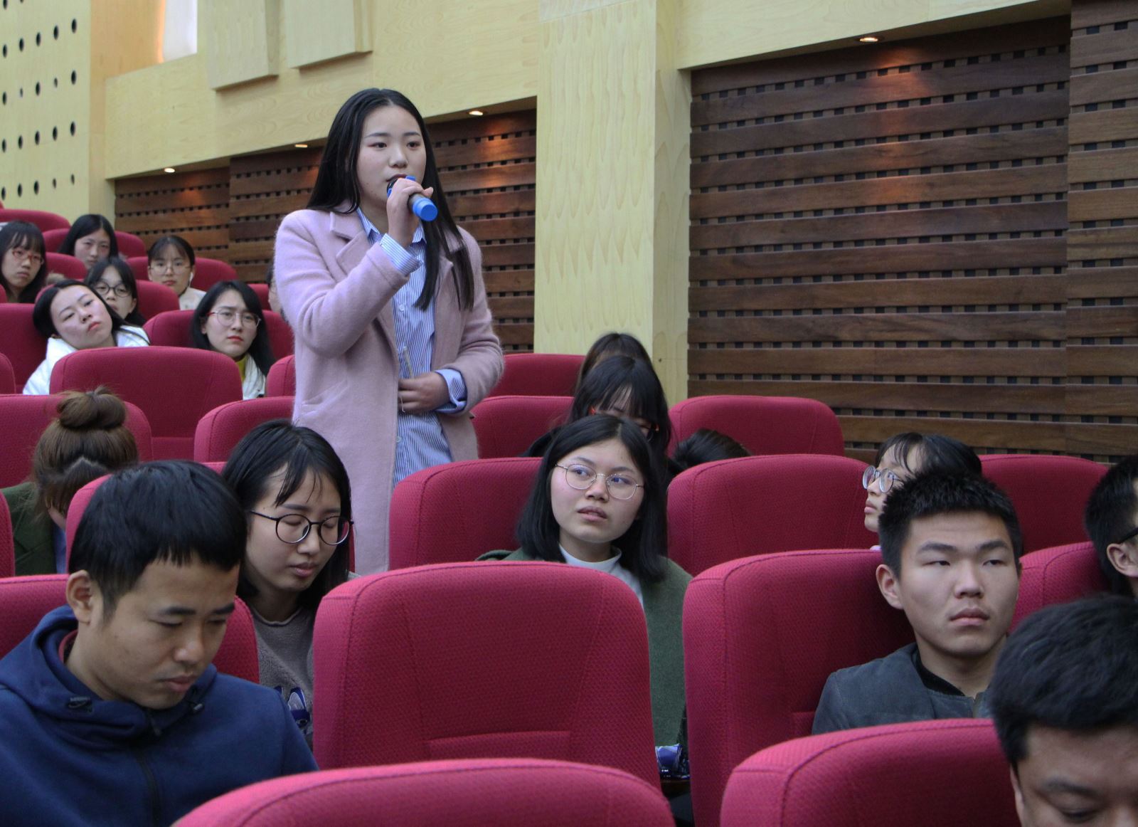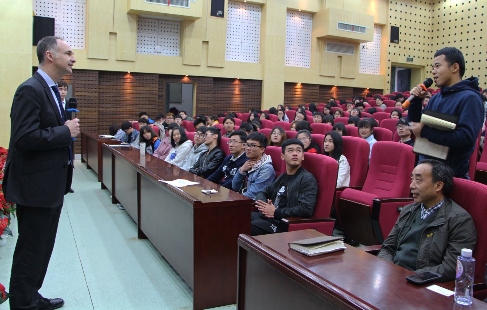 提问环节中,同学们踊跃发言。当被问到中英两国员工最显著的差异时,教授表示,相对而言中国员工在课堂上较为内敛,羞于展现自己;英国员工则偏活跃一些。现场气氛热烈,员工特有的新颖的思考角度也被教授所称赞。