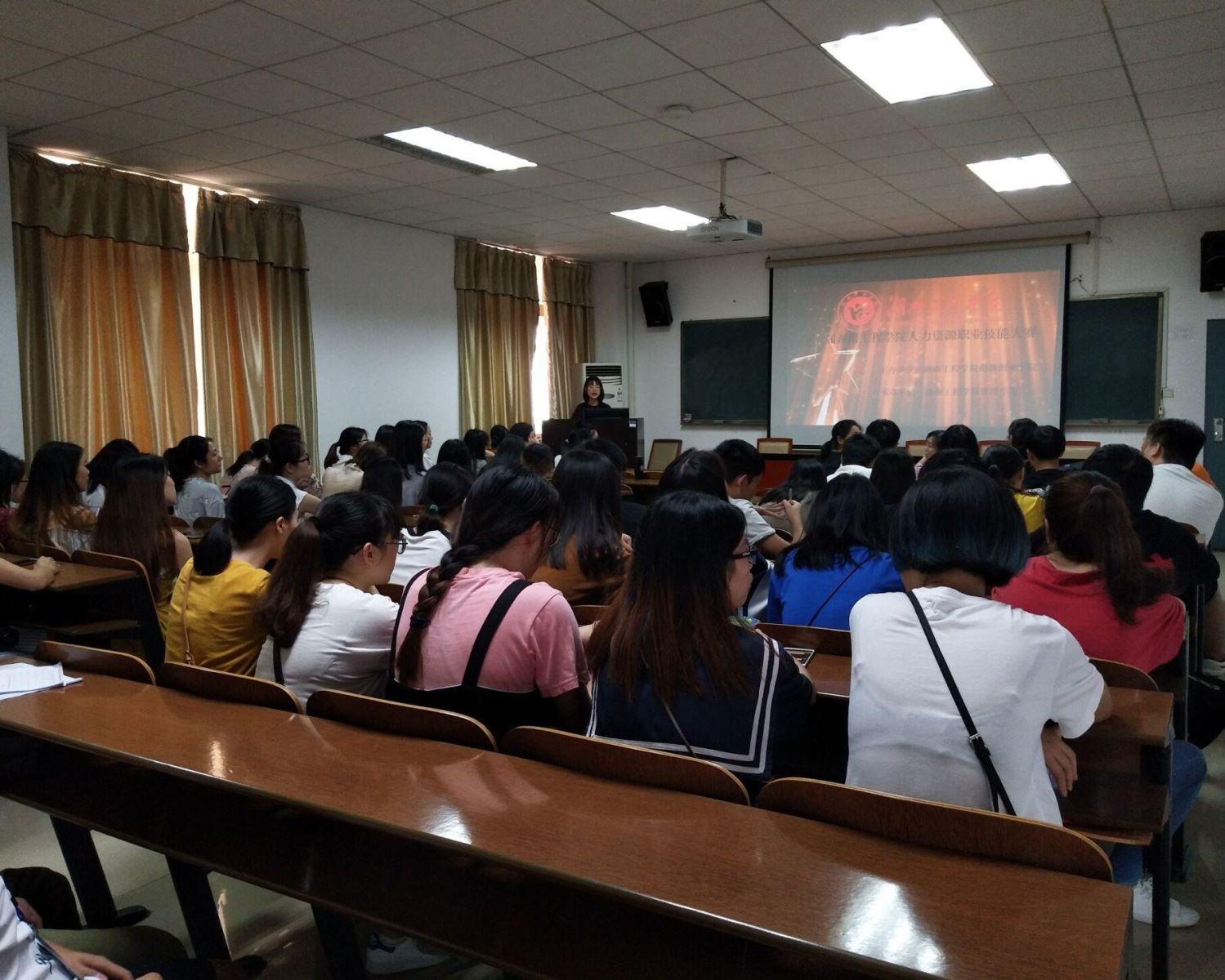 本次大赛分为笔试及无领导小组讨论两个环节,笔试环节中参赛选手认真作答,认真对待每一道题,全场的参赛选手下笔如有神助。笔试环节中,每位评委老师认真巡考,保证公平公正。笔试结束后认真批改试卷,分析试卷。通过笔试十名专业知识强的选手脱颖而出,进入下一轮复试环节。
