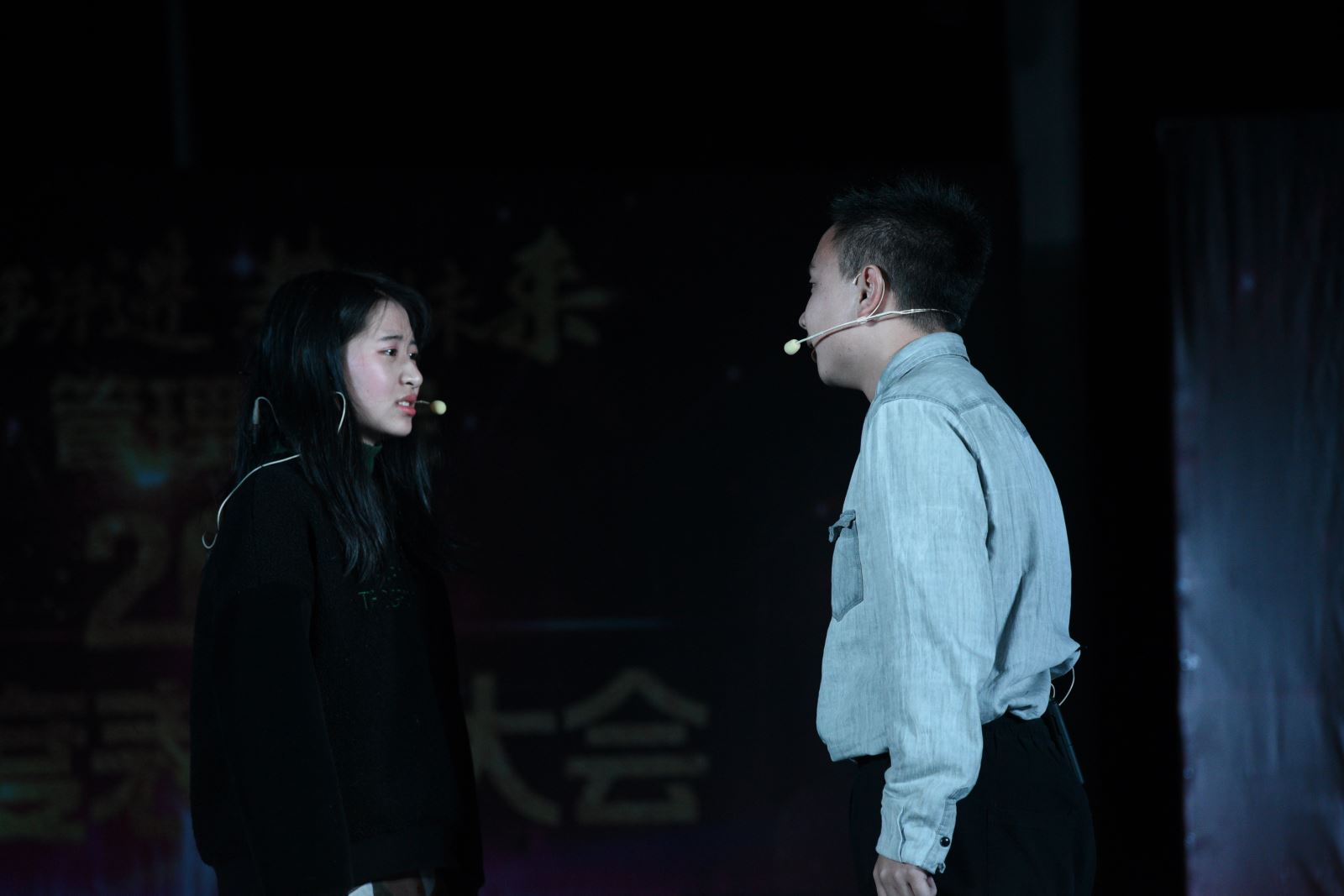 伴随着欢乐的开场舞《好运来》,表彰大会正式拉开帷幕。大会由管理公司党总支书记卢明纯致开幕词,他对本年度公司的各项员工工作进行了高度肯定,表达了对2018年员工工作再创佳绩的期望,并祝愿全院师生在新的一年工作、生活和学习都更上一层楼。继情景歌曲串烧《单纯的小美好》后,由管理公司辅导员老师为“优秀军训教官”等76位优秀个人进行颁奖。紧接着短剧《爸爸妈妈再爱我一次》以新颖的形式吸引了在场观众的目光,短剧以一个家庭为主体展开,深刻反映了夫妻之间因感情不合对孩子产生的阴影,希望孩子能够有个幸福的家。