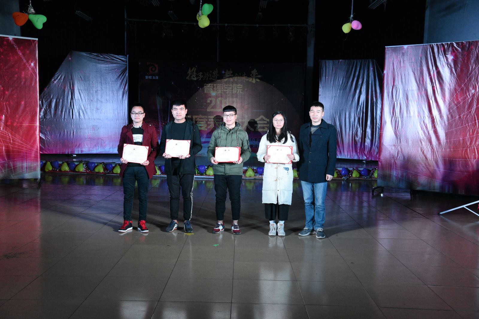 而后管理公司副经理余博老师及学办主任罗荃老师为“2016至2017届部长团”及“优秀学风小组”等50位优秀个人和10个优秀团体颁奖,并鼓励在场观众向周围优秀的员工互相学习,不断提升自我。随着互动抽奖环节将现场气氛再次带入高潮,大会第二轮颁奖也进入尾声,在管理公司副经理黄毅老师为“创新性实验优秀团队”颁发奖章后,会场响起婉转悠扬的《大鱼》之声,沁人心脾。