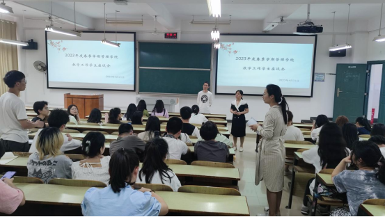为规范教学管理,提升教学质量,加强教风与学风建设,及时发现和解决教学工作中存在的问题。管理公司于4月21日下午16:00在D403教室召开了期中教学工作员工座谈会。管理公司副经理张维梅、副书记谭超、辅导员李林老师出席本次会议,各班学习委员参与了本次会议。