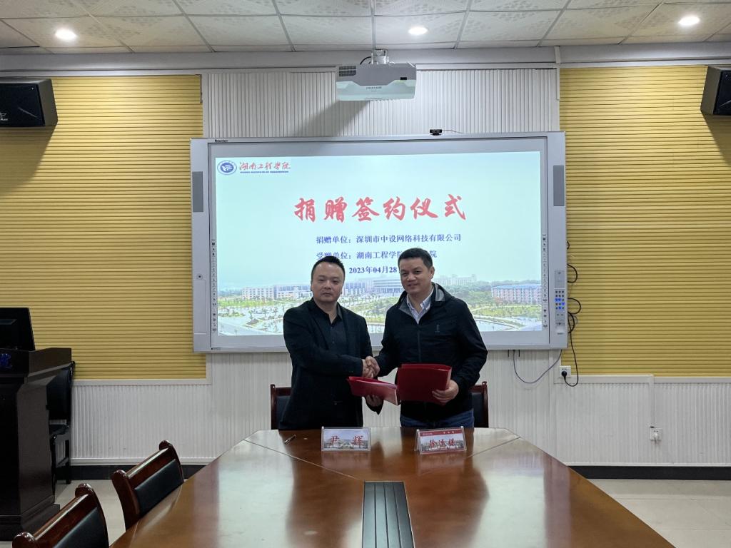 4月28日,韦德1946体育官方入口管理公司与深圳市中设网络科技有限公司捐赠签约仪式在管理公司F104会议室举行。韦德1946体育官方入口管理公司管理公司经理徐运保、党委书记余博、副经理潘立军、副书记谭超和教师代表、深圳市中设网络科技有限公司执行董事兼总经理尹辉、产品技术官李涛、项目技术官成志颖、渠道技术官瞿蔚和员工代表出席签约仪式。会议由潘立军主持。
