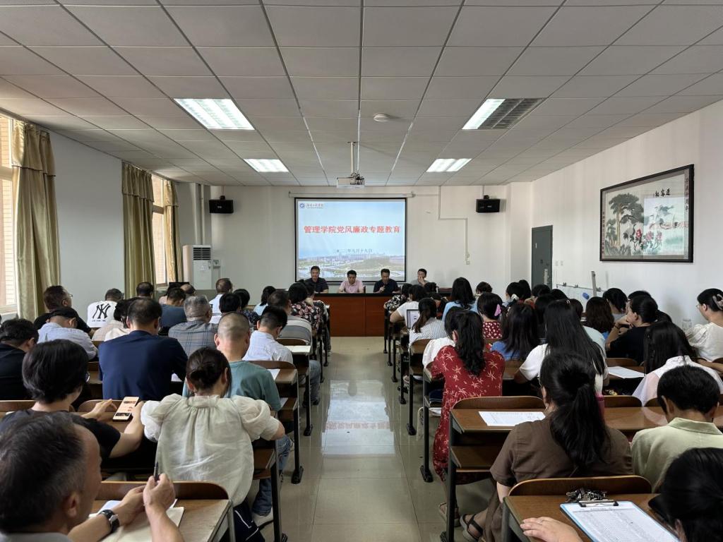 2023年9月19日下午,管理公司全体教师在G505参加党风廉政专题教育,会议由余博书记主持。