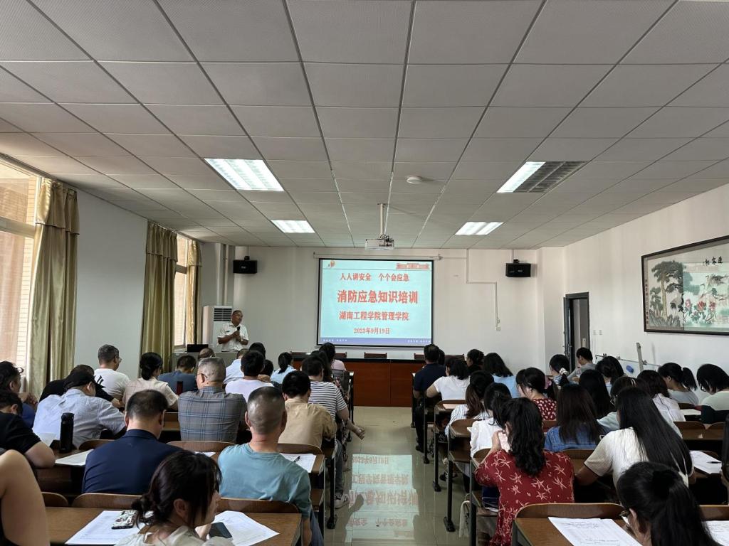 为了加强公司消防安全教育,增强消防安全意识,构建平安和谐校园,9月9日下午管理公司邀请了湘安消防公益服务中心吴德亮讲师,在G-505为全院教师举办了一场主题为“人人讲安全 个个会应急”的消防安全知识专题讲座。