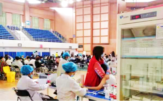新冠病毒疫苗“方舱接种点”被分为五个区域:信息登记、预检、接种台、进出口、留观台。信息登记的志愿者负责师生的信息登记与确认;预检的志愿者负责询问受种人的身体近况协助医生判断能否接种疫苗;接种台的志愿者协助接种医生,确保能够顺利实行疫苗接种;进出口的志愿者引导同学们佩戴口罩,带好有效证件,出口处的志愿者则引导同学们,维持好出口秩序;留观台的同学则负责观察是否有同学接种疫苗出现不良反应,同时维持现场秩序。体育馆内,20个接种台有条不紊地为师生提供接种服务,志愿服务者引导师生完成接种各项流程。
