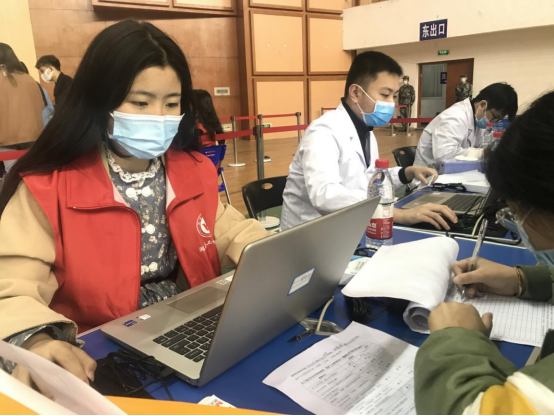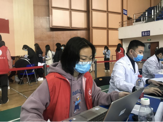 疫苗接种志愿服务工作开展以来,青年志愿者们坚守岗位,每天服务时长高达14小时,五天已服务16000余名师生接种新冠疫苗。
