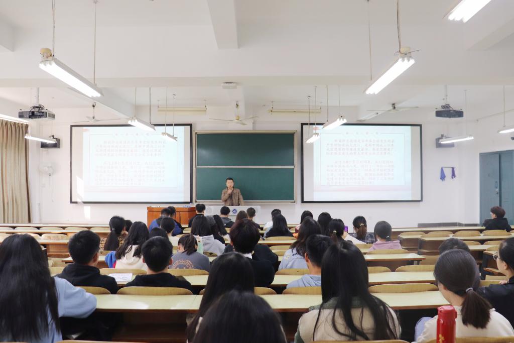 讲座伊始,副书记张宏以“疫情下的中国”为序曲展开叙说,讲述了武汉疫情期间奋战在一线医护人员、一线警务人员、无私奉献的志愿者和热心公益的爱心人士的伟大事迹,他们义无反顾冲在了抗疫第一线,奔赴疫情战场,不计报酬、不畏生死。随后,副书记张宏就武汉火神山医院的火速建成说明了在中国共产党领导下的中国特色社会主义制度的显著优势,展示了在疫情期间特有的中国力量、中国速度和中国担当。他还生动形象地诠释了青年老员工应如何在抗疫斗争中担负起自己的使命,希望同学们勇担时代责任,争做时代青年,书写无愧于时代的青春篇章。