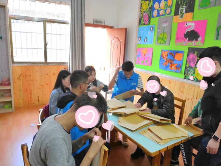 孩子在折纸袋时非常认真,老师和志愿者们也经常夸他们,对于老师和志愿者们的夸奖,孩子们一下子就特别开心,红红的脸如今天的朝阳,充满了希望,孩子们乐了一会后便又开始自己手头上未完成的任务,老师在他们的汗水和笑脸中看到了他们的梦想,他们的希望。
