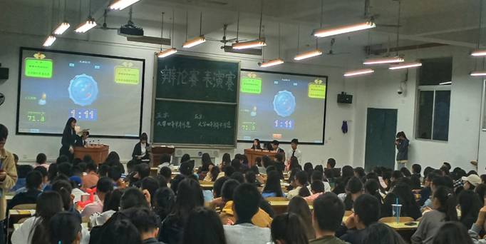 经过几回合激烈的辩论,在紧张而又激烈的角逐下,本次新生辩论赛表演赛在同学们热烈的掌声中圆满地落下帷幕。