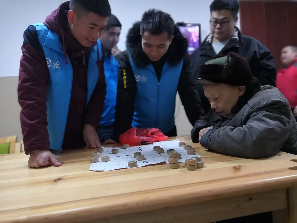 1月5日,管理公司员工联合会青年志愿者中心携手蓝丝带联盟和纺织服装公司青年志愿者中心前往湘潭市福利院送温暖,亲切地拉着老爷爷老奶奶们的手,问候他们的生活状况。在活动中,志愿者们不仅给爷爷奶奶捶背,与爷爷们下象棋,还和爷爷们写对联,全是一幅幅其乐融融的画面,最后大家共同度过了一个愉快的上午。