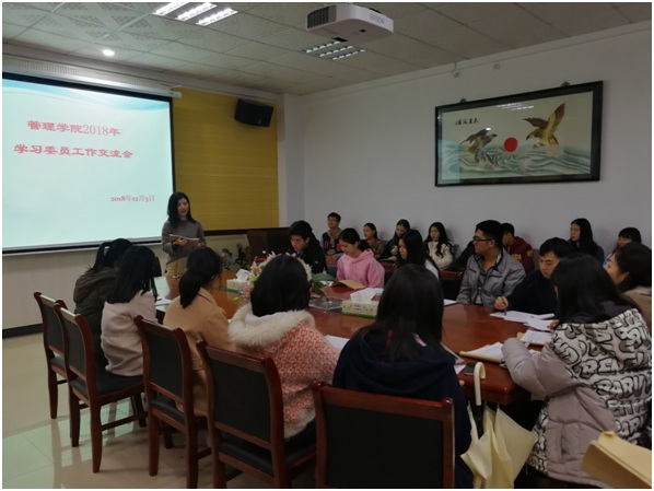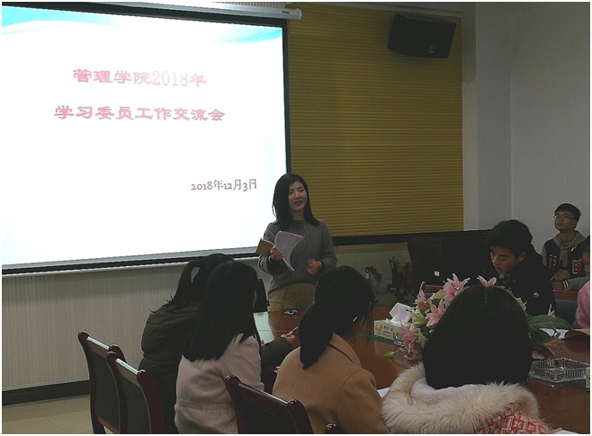 为响应2018年下学期教学中期检查关于班务日志的整改意见,管理公司于2018年12月3日于教学楼F104召开全体学委工作交流会,会议由公司员工办公室主任罗荃老师主持,全体学委参加会议。