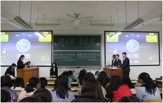 比赛正式开始前,双方辩手友好握手,并进行简洁的自我介绍。比赛开始后,D301的正反方就“遏制艾滋,政府还是群众应该扮演更重要的角色”这一辩题展开辩论。第一场比赛为正方人力资源管理一队对战反方旅游管理一队,正方一辩以政府的引导和资源支持为切入点,陈述己方“遏制艾滋,政府应该扮演更重要的角色”的观点,反方一辩则从群众具有直接执行力入手,细致解析,论证自己的观点。在随后进行的环节中,正方辩手从信息资源、人力资源、科研资源等多角度,指出政府发挥的重要性,反方辩手毫不示弱,以非洲国家的群众组织为例进行反击,指出群众组织能够将遏制艾滋做的更有实际效率,场下观众掌声迭起。第二场比赛在正方电子商务一队和反方市场营销一队之间展开,双方辩手们在你来我往,唇枪舌战的同时也始终保持着良好的风范,展现出管理公司员工的风采。