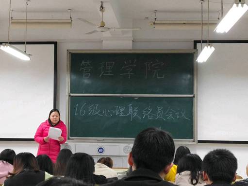 管理公司于2018年11月21日中午12:20在教学楼D203召开了“16级心理联络员会议”。此次会议由管理公司员工办公室单艳艳老师主讲,管理公司16级全体心理联络员到场参会。