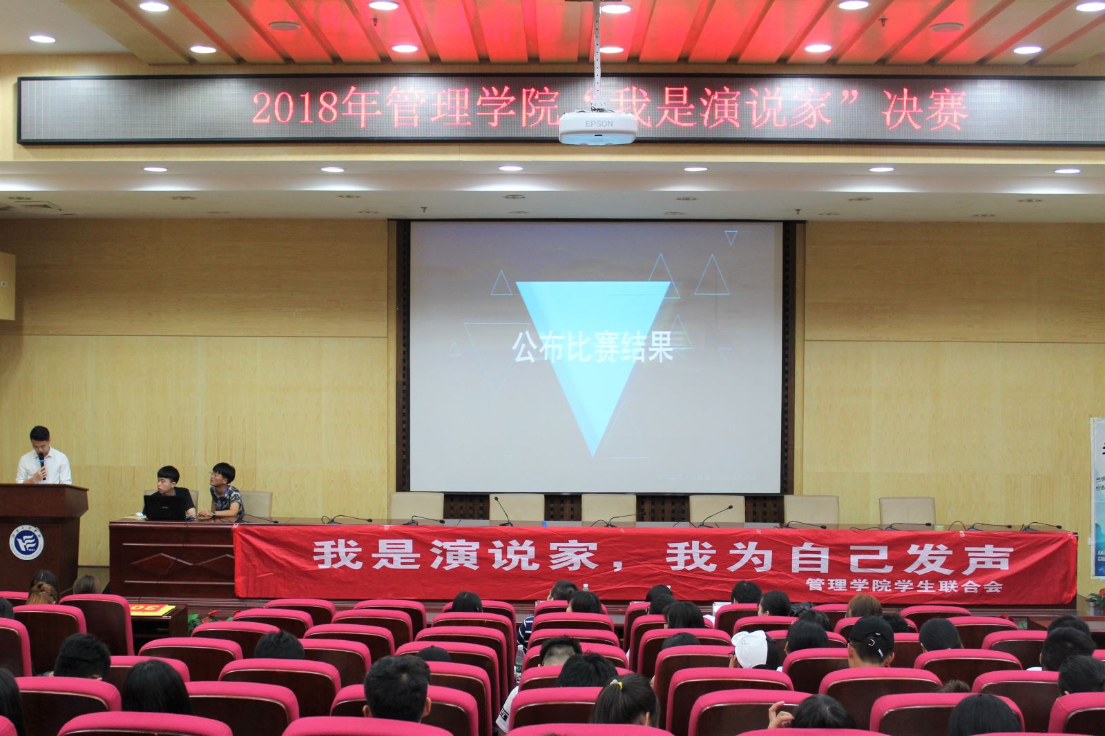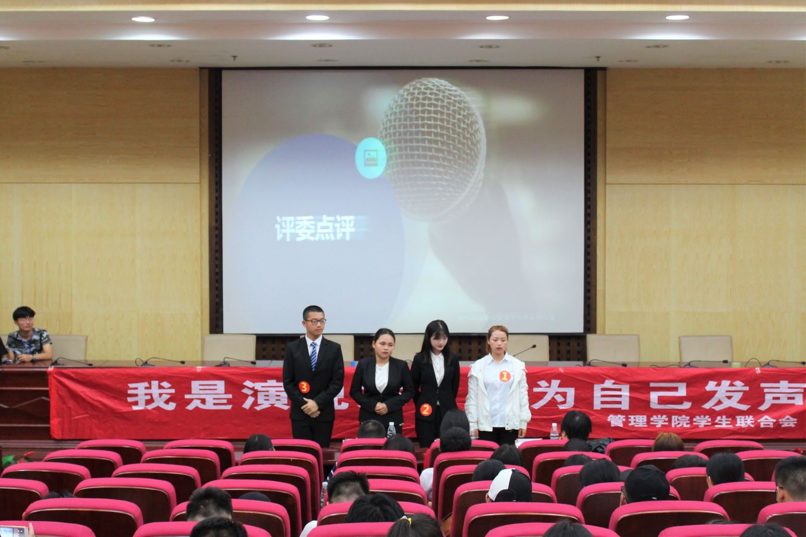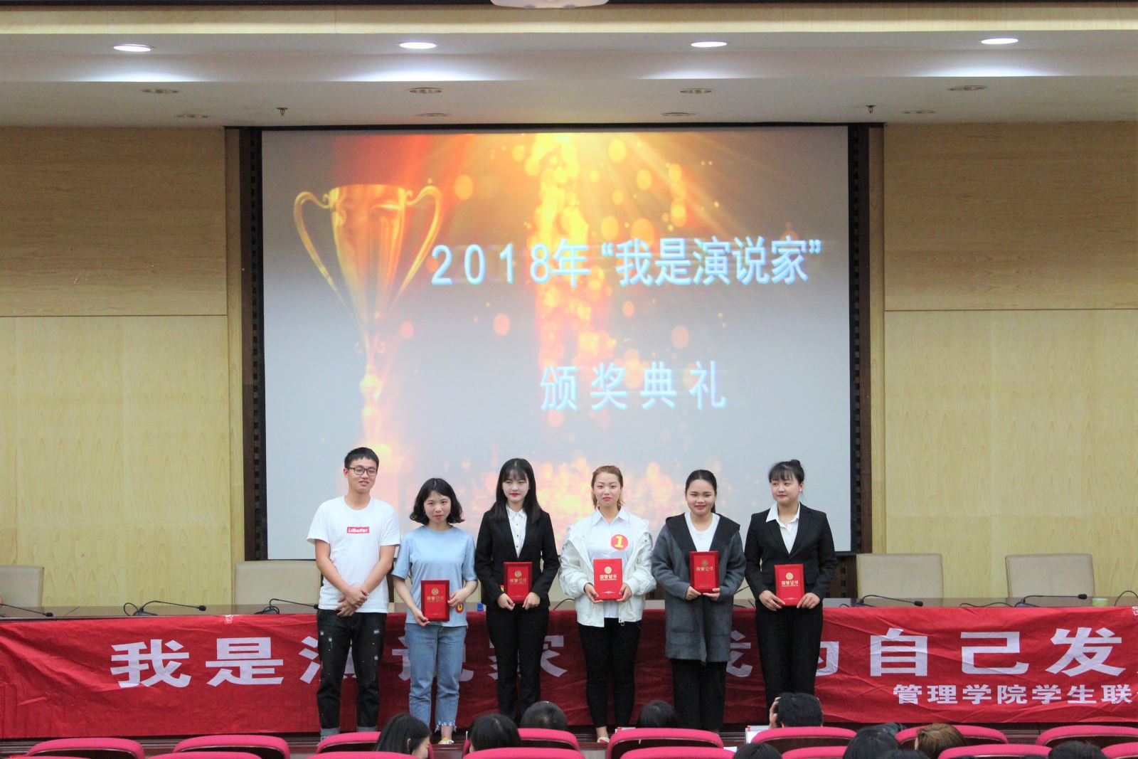 2018年5月4日7点整,由韦德1946体育官方入口管理公司员工联合会主办,管理公司员工联合会就业指导部与管理公司员工联合会实践部承办的《我是演说家》总决赛在二报告厅正式举行。