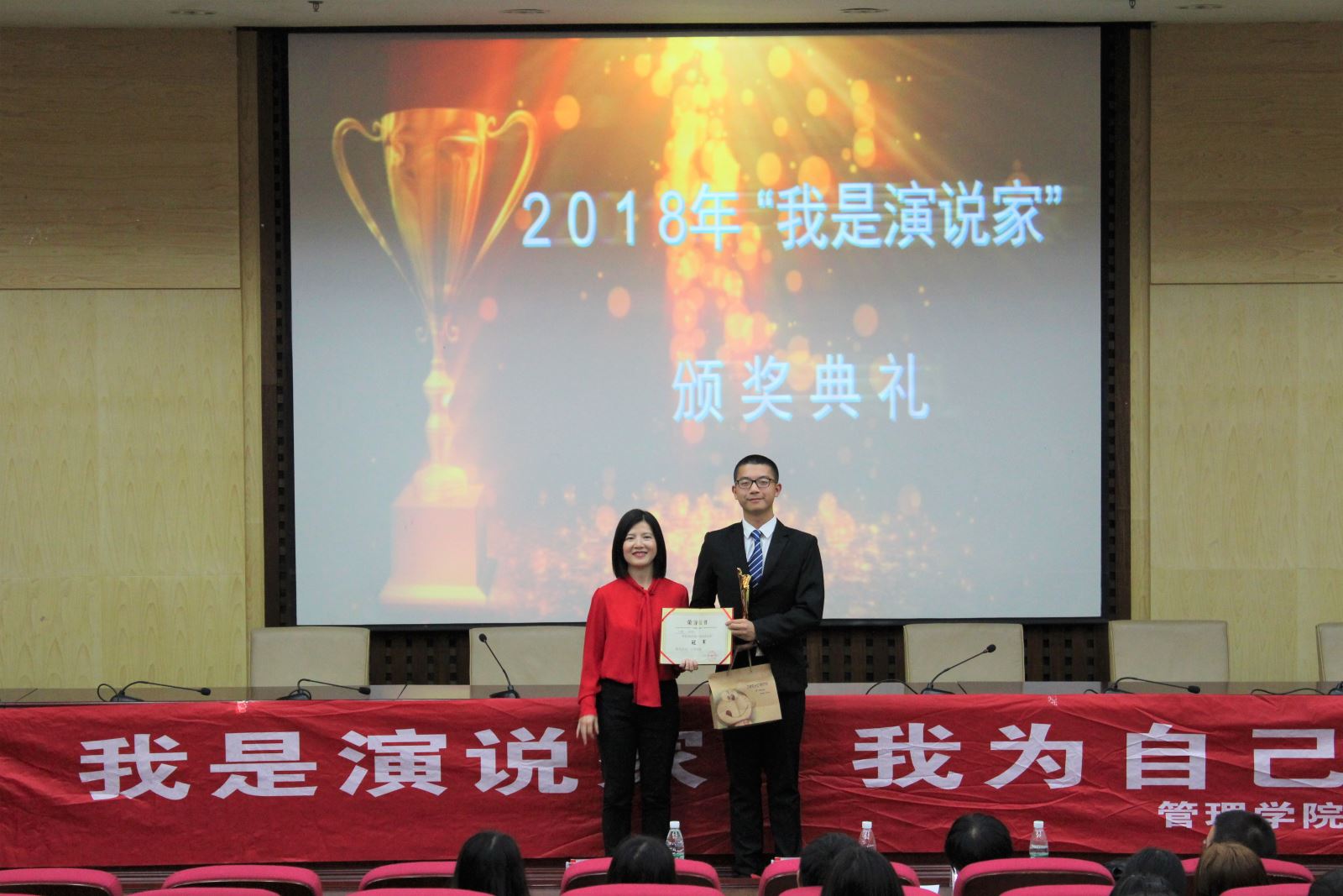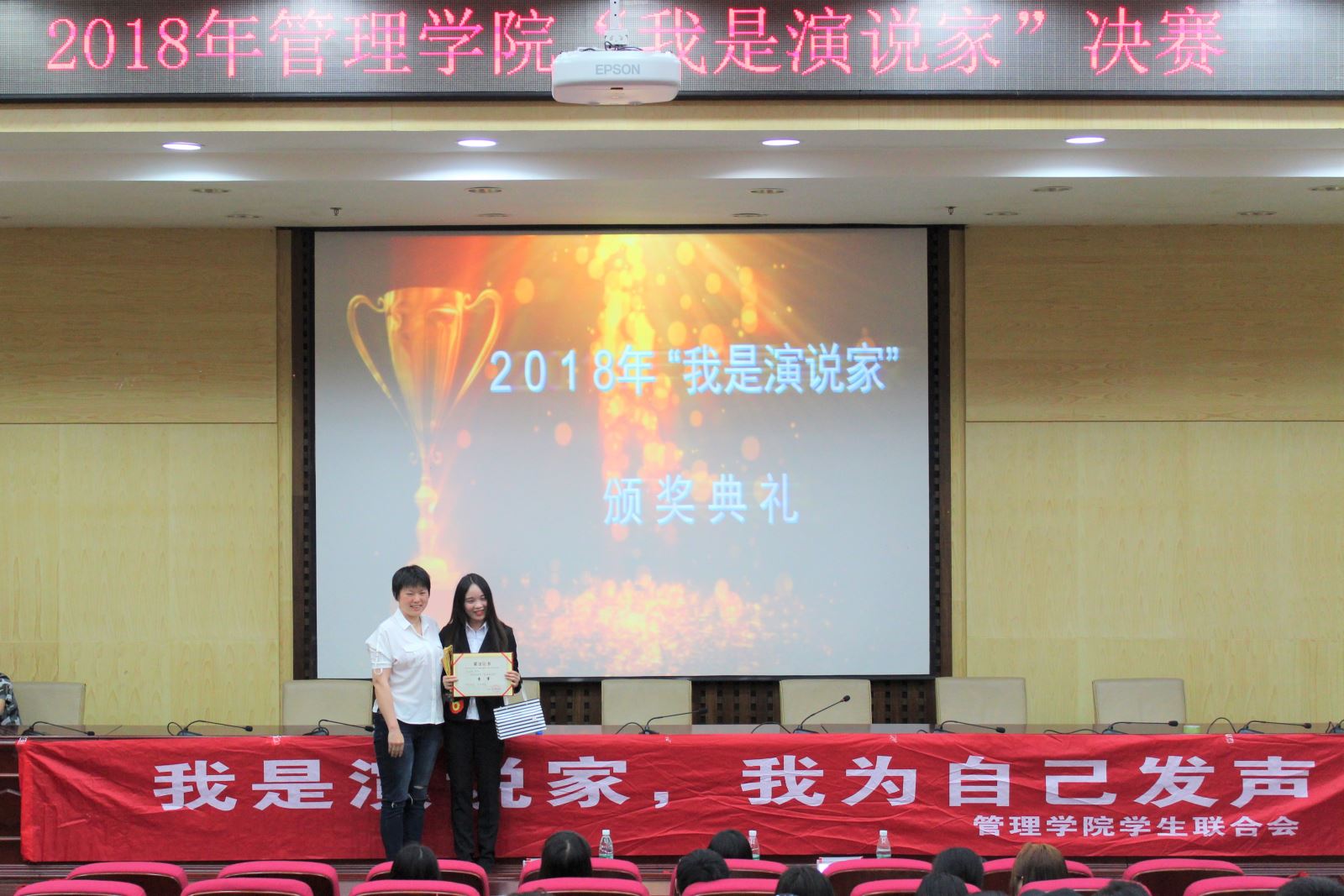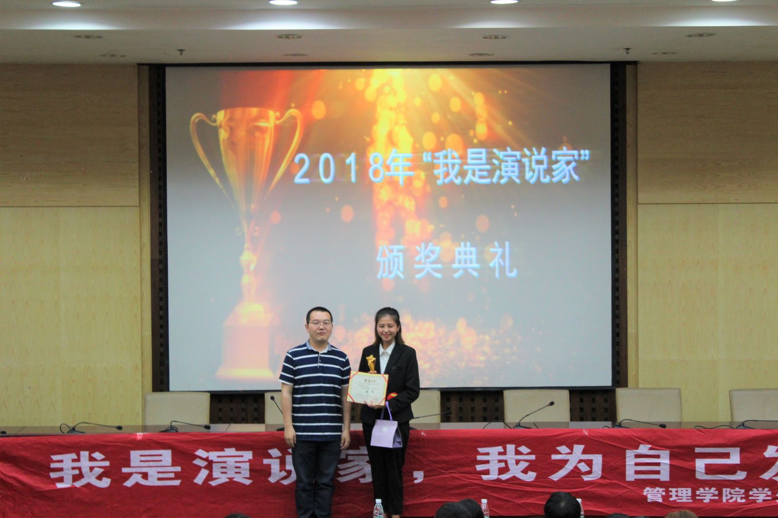 2018年5月4日7点整,由韦德1946体育官方入口管理公司员工联合会主办,管理公司员工联合会就业指导部与管理公司员工联合会实践部承办的《我是演说家》总决赛在二报告厅正式举行。