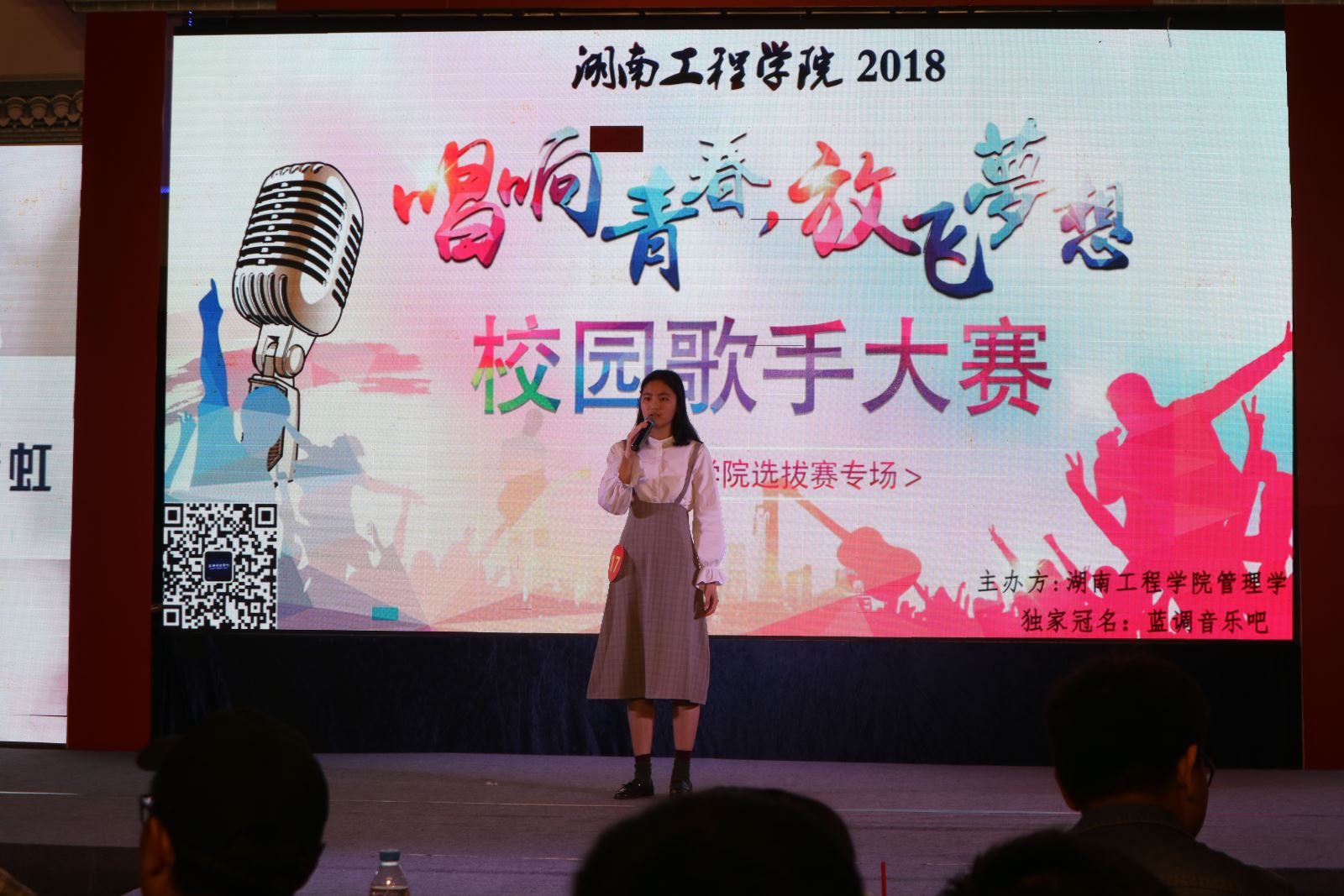 校园歌手大赛之管理公司选拔赛赛制分为三轮:第一轮由评委随机喊停,十分制按照去掉最高最低分取平均值的评分方式进行评比,前十名进入第三轮;第二轮又被称为踢馆赛,第一轮淘汰选手提前做好准备进行踢馆,四名评委一人一票,两票即可进入第三轮比赛;第三轮每位选手准备一分半钟的伴奏进行演唱,评委进行评分,分数排前四的进入校赛,第五名至第十名进入复活赛。此次比赛一共有23人参赛,其中一组为组合,共22组。来自六个不同专业的他们用不同的音色演唱了清新伤怀的民谣、嗨爆全场的嘻哈、细腻温柔的情歌等歌曲。除了动人的歌曲我们也请到了玩舞工作室和管理公司员工联合会文艺小分队为现场的歌手献舞助兴加油。经过评委的点评和讨论,最终市营1601韩钊、市营1702刘志强、工管1602吴雨晴、工管1601喻婷四位同学成功进入校赛。旅管1701李欣怡、物流1702朱雪琪、工管1702刘泽洲、旅管1701李馨柔、市营1702黄丹丹、市营1602陶冬梅以上六位同学进入复活赛。