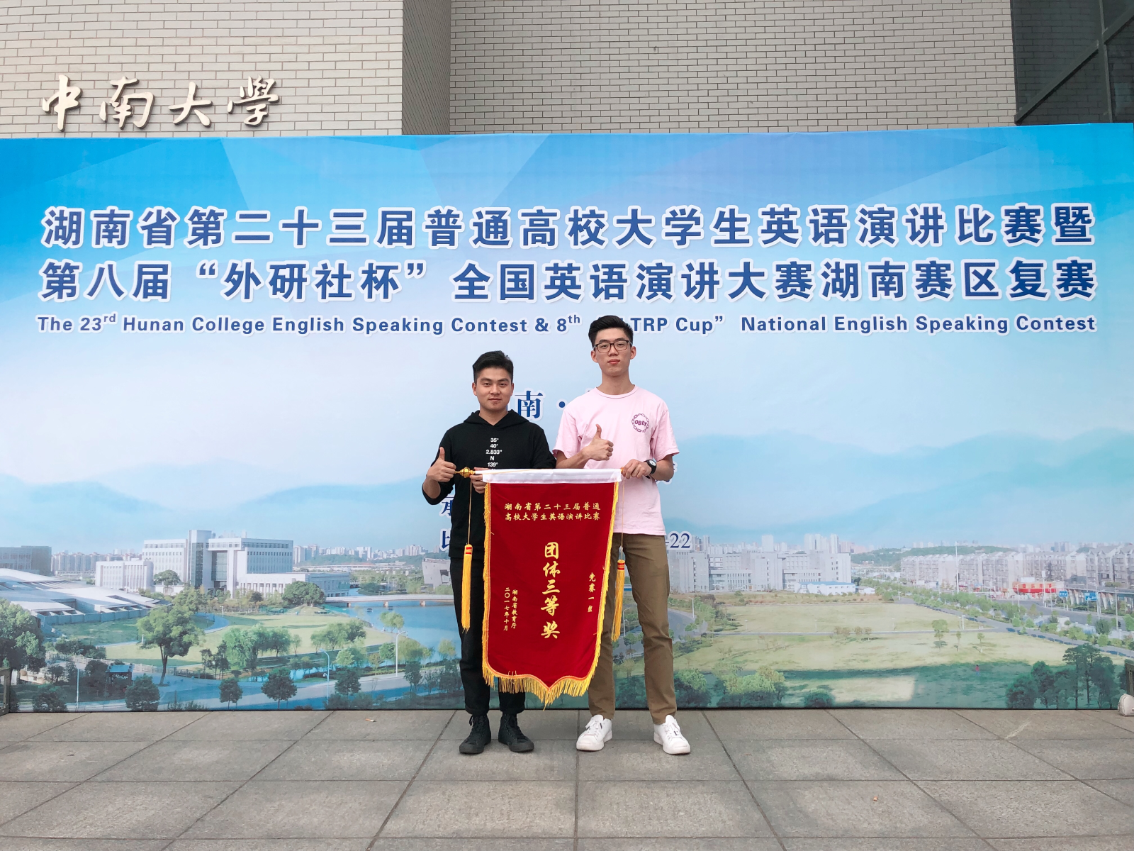 2017年10月21-22日,湖南省第二十三届老员工英语演讲比赛暨第八届“外研社杯”全国英语演讲大赛湖南赛区复赛在中南大学隆重举行。公司派出以杨永和、王家义为领队,陈锋、刘青为指导教师的竞赛一组和竞赛二组两支代表队参加了此次比赛。 在高手如云的赛场上,管理公司选手顶住压力,稳定发挥。人力资源管理1501班的文博涵(非英语专业)赢得个人三等奖(刘青老师指导)。