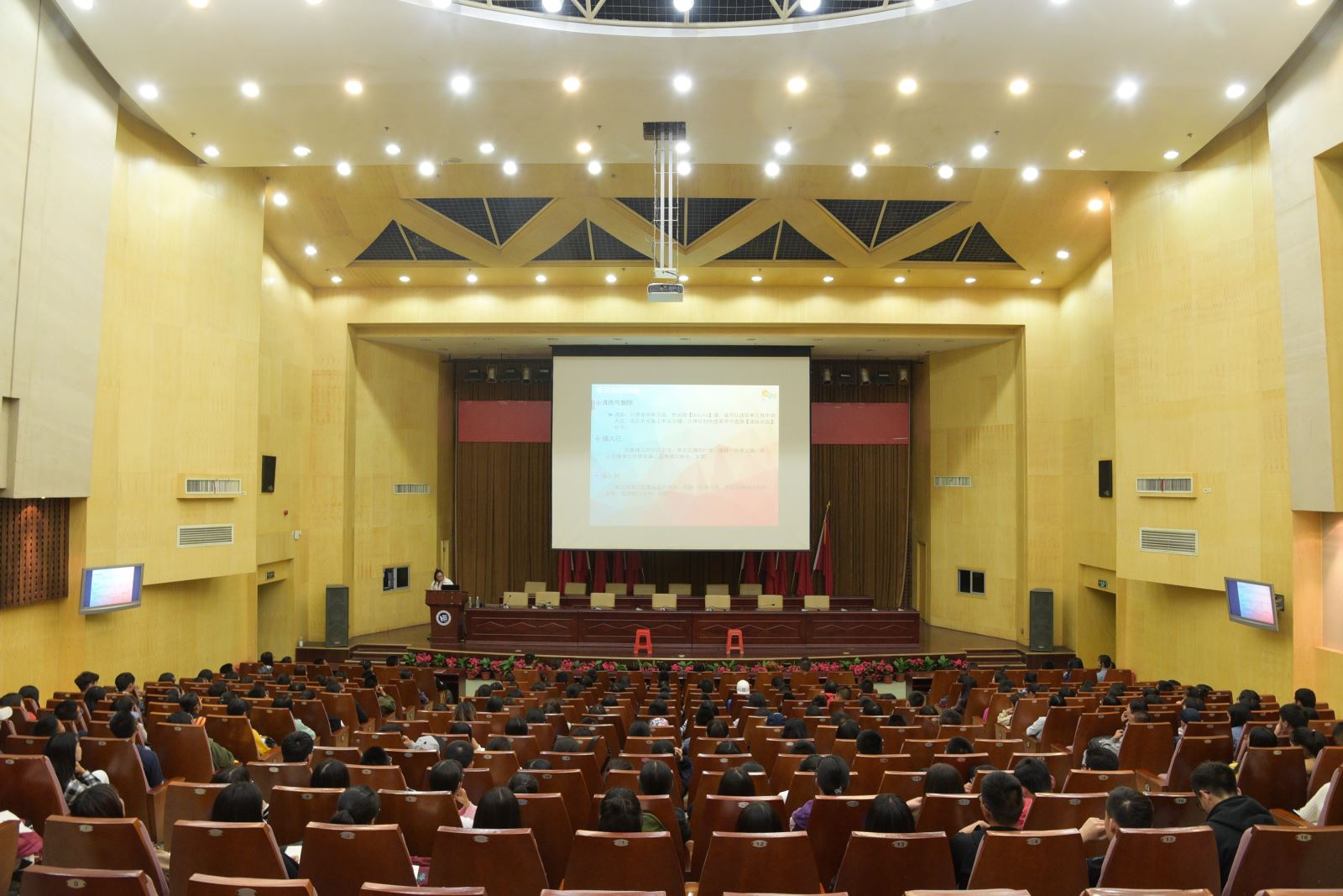 宣传部部长王陈第三个走上主席台,对新闻稿的写作进行了讲解,说明了在编写会议类,活动类,竞赛类新闻稿时应注意的相关问题,并详细讲解了新闻稿配图时应该注意的方面,让干部干事们对新闻稿的写作有了更深的认识。