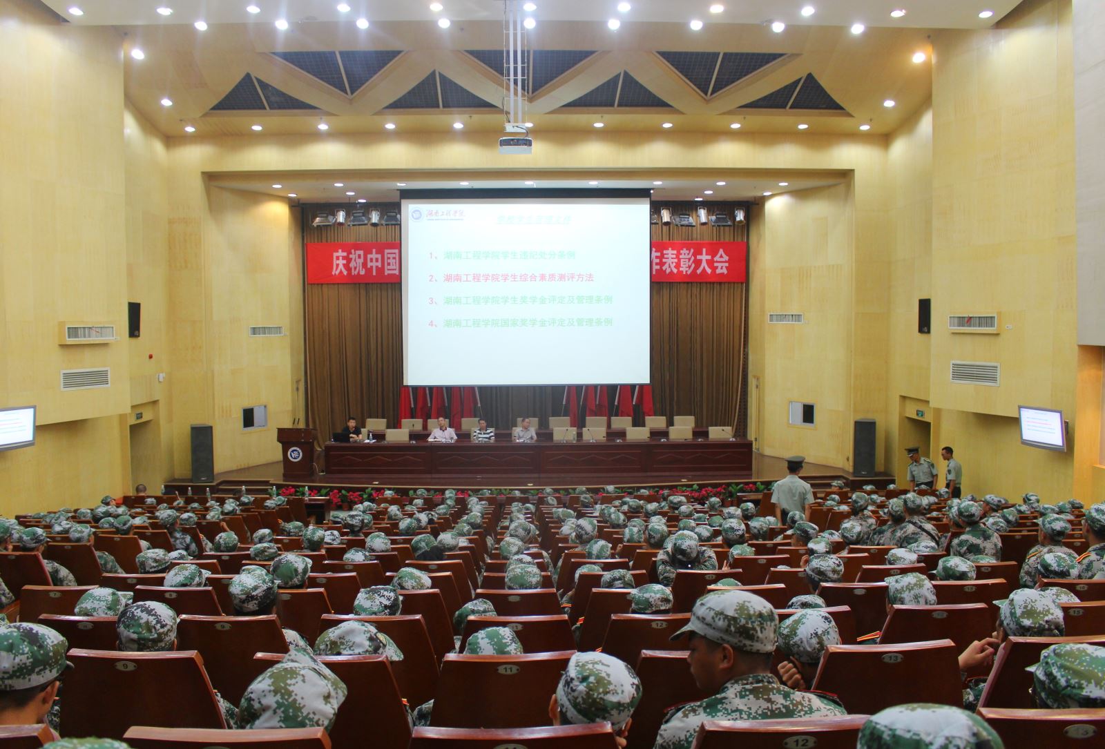 军训生活并不只有单纯的训练,在此期间,管理公司举办了专业教育大会以及新生入学教育大会,让新生对公司有一个充分的了解。此外,公司还举办了合唱比赛,让新生们在紧张训练的同时参与集体活动,劳逸结合,更高效的进行训练。此次比赛,管理公司荣获合唱比赛A组季军,一首《江边有个湘潭县》唱进了每个人的心里。