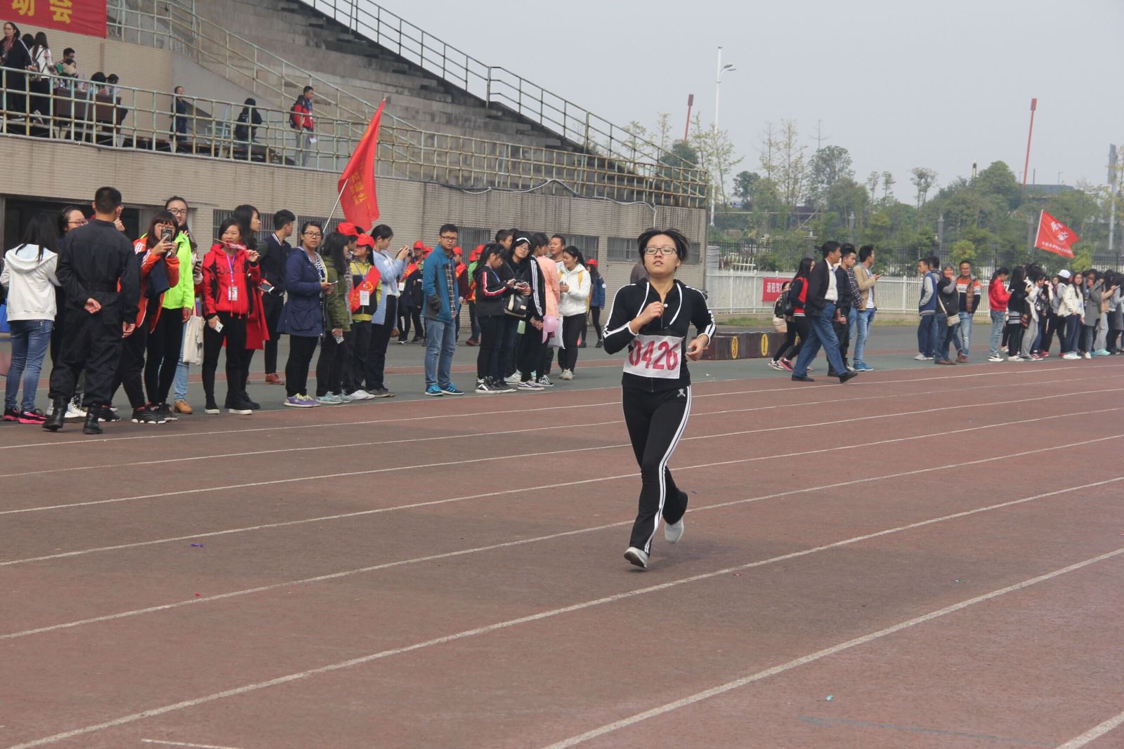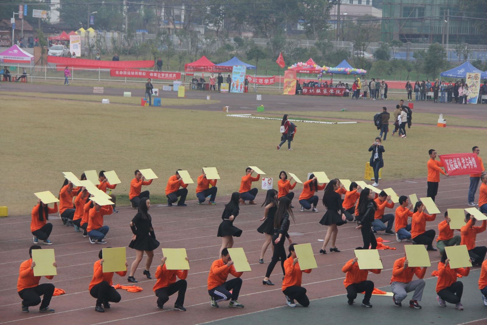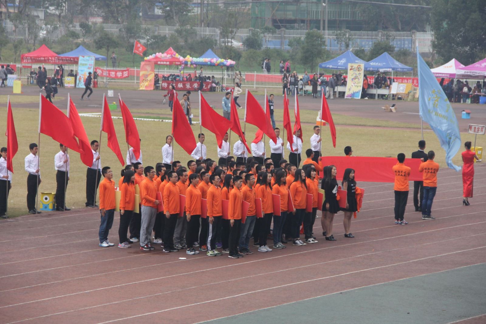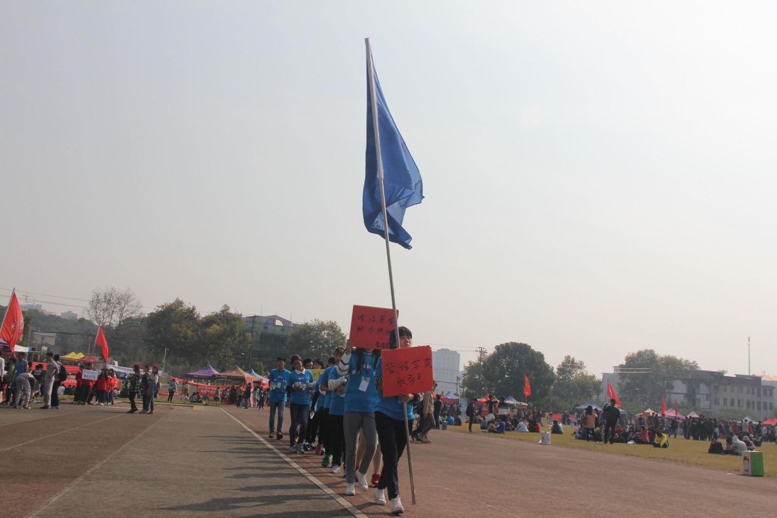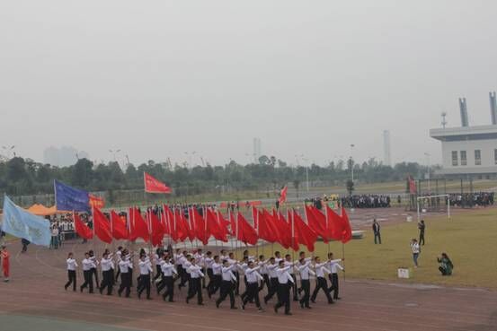 11月1日,校运会如期开展。你们神采飞扬!即使身上薄薄的衣衫并不能帮你们抵御寒风,但你们的热情与信心让呼啸的寒风变得微不足道,好像这寒风正是为了让你们手中的旗帜扬得更高而来。