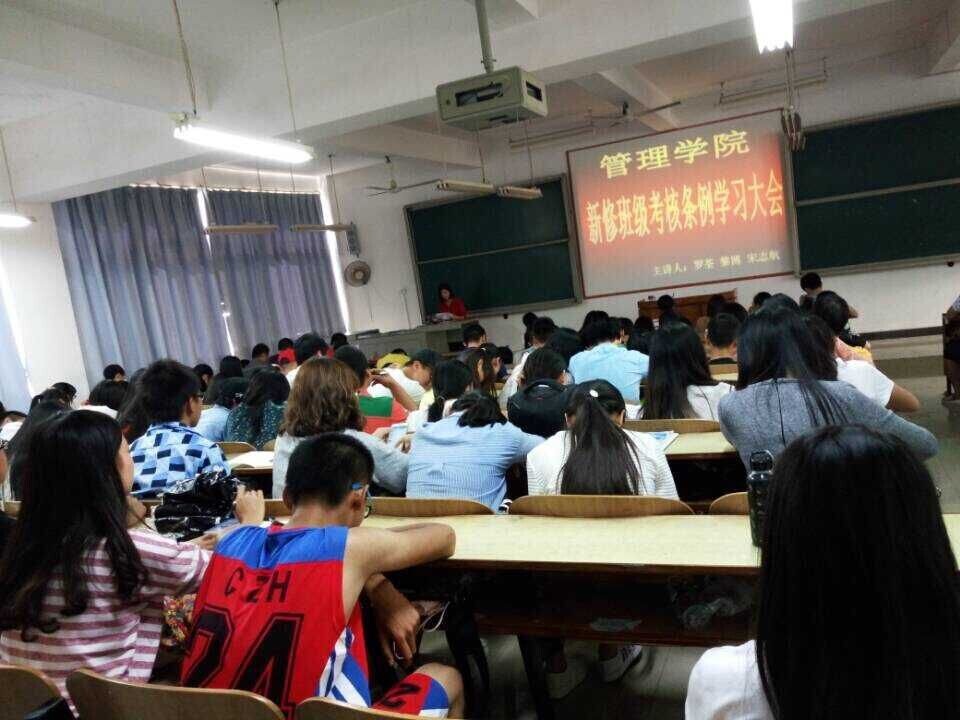 会议期间,罗荃老师,宋志航老师,黎博老师依次上台对本条例中考核的相关内容进行了详细讲解。公司班级考核条例涉及内容为:学风建设、课外科技活动、体育锻炼与竞赛、宿舍管理、教室卫生、班主任工作、班级责任、宣传工作八个方面。考核原则为每周考核、每月公布、每学期评比,考核结果作为班级及个人评奖评优的重要依据。参会的各班班委和员工会各部门部长们在会议期间都认真地做好了笔记,纷纷表示将组织班级同学认真学习,严格贯彻执行,共促管理公司优良院风、学风。