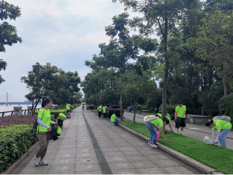 管理公司三下乡社会实践队伍在沿江风光带开展捡拾垃圾活动