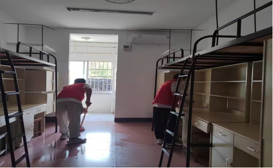 为进一步落实迎新工作、美化校园、为新生营造温馨、舒适、整洁的生活与学习环境。9月13日周二下午,管理公司党支部和生活纪检小组在亲民二栋和四栋共同举行打扫新生寝室的大型劳育活动。