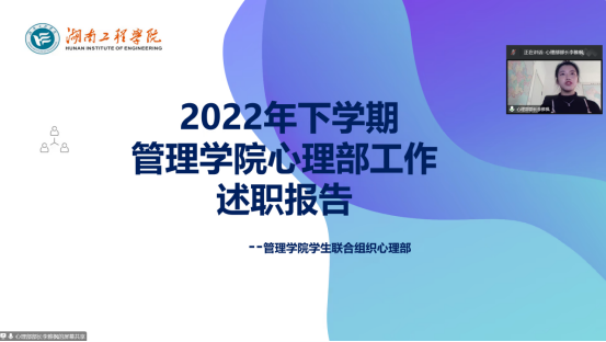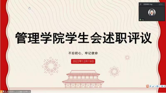 12月19日下午14时,为总结本学期员工会的各项工作成果,加强对员工会工作人员的管理,进一步制定来期工作方针,为来期的员工会工作做铺垫。管理公司在线上召开员工会工作人员述职评议会议,团总支书记彭小玲、员工联合组织主席团、部长团全体人员参加了本次会议,会议由易班管理中心主任段妙鑫主持。