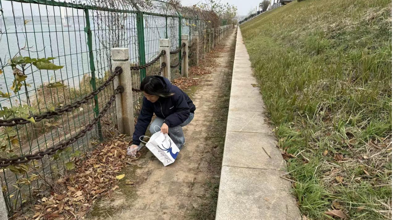 活动开始,各支部党员准时在湘江风光带指定地点集合签到,手持自备的环保袋、手套,以支部为单位前往各自负责的河段。活动现场,党员们俯身捡拾河道周边的塑料瓶、纸屑、包装袋等垃圾,细致区分可回收物与其他垃圾,将分类后的垃圾规范整理入袋。寒风中,青年党员们在江堤步道上有序开展作业:部分党员蹲身俯身,细致清理石缝中残留的烟头;部分党员按活动要求,用手机如实记录同伴分拣垃圾的工作场景。党员们以实际行动展现出志愿服务的良好风貌,成为冬日湘江畔一抹鲜亮的 “志愿底色”。