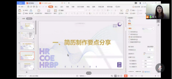 贺佳盈随后正式切入主题,对简历制作进行剖析,主要分为四个方面:最先谈到的是简历的类型,紧接着谈到的是什么叫简历。怎样的一份材料才能被称之为简历。随后紧密相关地展开如何才能制作一份好的简历,好的简历所具备的要素。以及对同学们的简历进行剖析,最后还特别提到了无领导小组的相关事项。