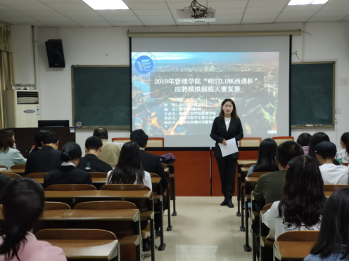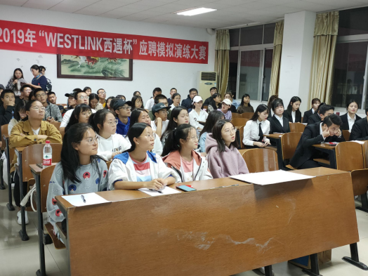 2019年10月22日晚7点,由韦德1946体育官方入口管理公司主办,管理公司员工联合会就业服务部承办,深圳市西遇时尚服饰有限公司协办的“管理公司2019年“WESTLINK西遇杯”应聘模拟演练大赛”复赛在教学楼G505如期举行。