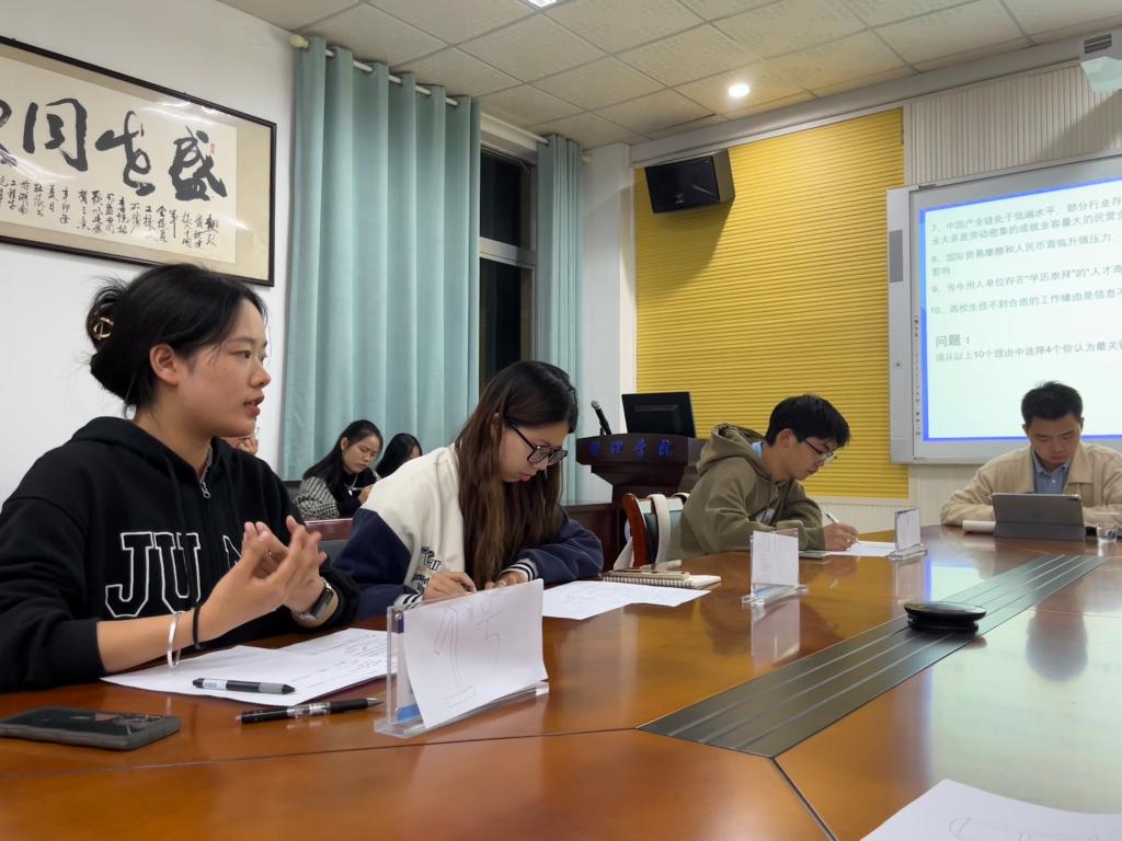 培训开始前,观众们有序签到入场,在进行完简单的规则介绍后培训正式开始。本次培训将选手们分为两组,分别对“提高消费者维权意识,营造良好市场环境”和“高校毕业生就业难问题”两个例子进行无领导小组讨论。培训过程中,选手们踊跃发言,从个人的微观角度和社会、国家的宏观角度等方面进行阐述,条理清晰,自由发言环节更是精彩激烈,选手们的精彩表现使得观众们掌声不断。每组选手发言完毕后,三位指导老师分别对每位选手进行了中肯的点评,并结合各自在无领导小组讨论中的表现对其优势和劣势进行了具体的分析,帮助选手们如何更加精准地筛选重要信息,并就“如何当好团队中的破冰者和领导者”提出了宝贵的建议。最后,选手对本次培训中存在的问题积极提问,在指导老师耐心解答后,赛前培训圆满结束。