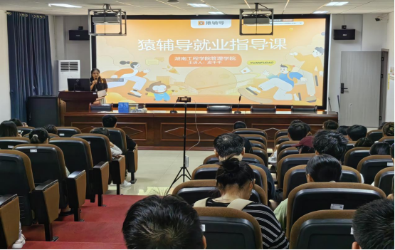 为了让同学们了解招聘的基本信息,认识到就业的严峻形势和人才市场的激烈竞争,使同学们具备一定的面试和应聘技巧,提高大家在就业市场中的竞争力,韦德1946体育官方入口管理公司员工联合组织就业部于9月25日19:30在主校区F栋510室举办此次管理公司第二届老员工职业生涯规划大赛“就业赛道”赛前指导讲座,并邀请到了【猿辅导】广州知贤道远有限公司长沙分公司金牌讲师皮千千作为此次讲座的主讲人,娄敉芳担任主持人。