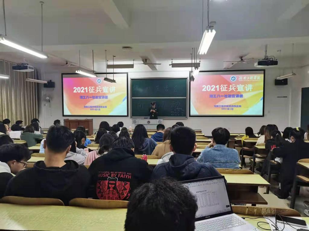 退役士兵代表下班介绍今年征兵政策、应征入伍基本要求、我国现行兵役制度、征兵时间和网上报名流程,详细解读国家对应征入伍服义务兵役的高校员工资助、经济补助待遇及考学提干等方面政策。