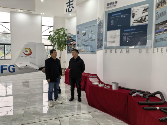 徐运保一行同时参观了军工企业贵州新泰丰航空航天科技有限公司的设计研发部门和生产车间以及展厅,并进行了深入的交流。